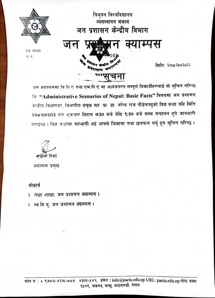 एम.पि.ए. (भर्ना वर्ष २०८२) प्रथम सेमेष्टरको कक्षा...